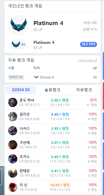 계정을 배치부터 맡겼는데 원하는 티어까지 단숨에 올려주시더라구요 이틀도 안걸린거 같습니다 만족하는 승률로 작업해주신 롤대리 오로라팀 정말 감사합니다 또 찾아뵙겠습니다